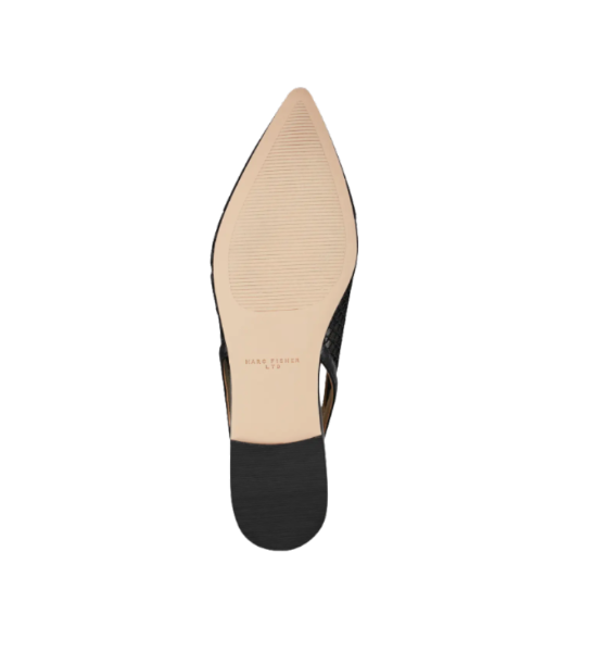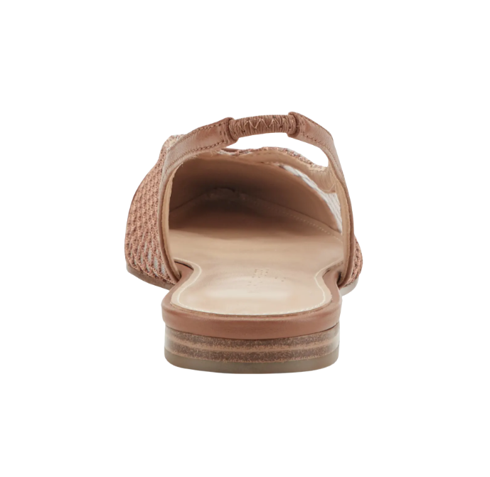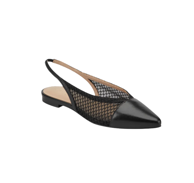 A pointy cap toe sharpens this breezy mesh flat secured with a stretchy slingback for comfort and ease.