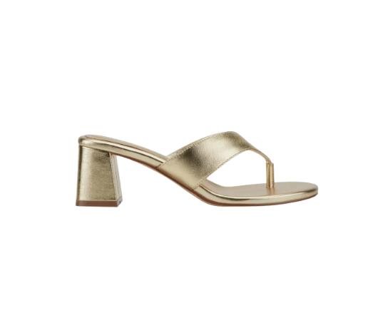 Supple leather straps define a sleek sandal lofted by a block heel.